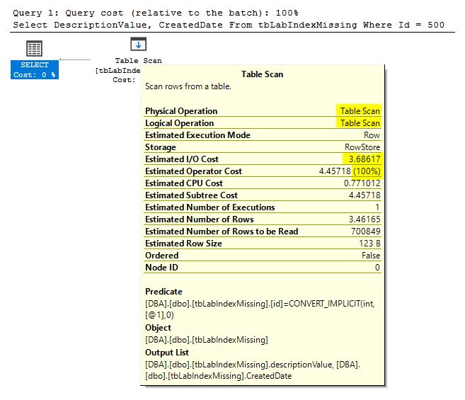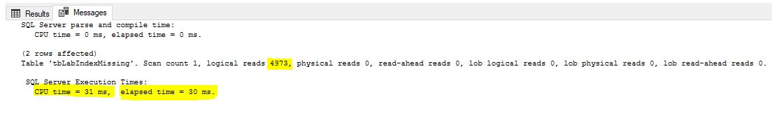 --// Test 01 - Index Validation (Missing Data) using the Execution Plan